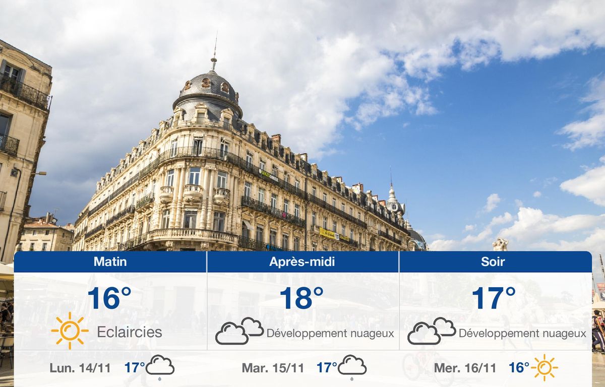 Prévisions du temps heure par heure actualisées en continu avec températures pluie et vent à Montpellier. Consultez la météo détaillée dans lheure et pour les heures suivantes. Couverture nuageuse 85.